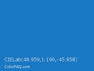 CIELab 48.959,1.196,-45.858 Color is a normal blue color and the nearest color is Bright Navy Blue #1974d2. Hex code #1b78c2 and RGB value is rgb(27,120,194). In RGB color space, this color is composed of 11% red, 47% green, 76% blue, In CMYK color space, this color is composed of 86% cyan, 38% magenta, 0% yellow , 24% black , In HSL color space, this color has a hue angle of 207° , 76% saturation and 43% lightness.