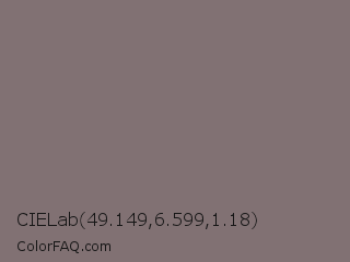 CIELab 49.149,6.599,1.18 Color is a normal red color and the nearest color is Spicy Pink #816e71. Hex code #817173 and RGB value is rgb(129,113,115). In RGB color space, this color is composed of 51% red, 44% green, 45% blue, In CMYK color space, this color is composed of 0% cyan, 12% magenta, 11% yellow , 49% black , In HSL color space, this color has a hue angle of 353° , 7% saturation and 47% lightness.