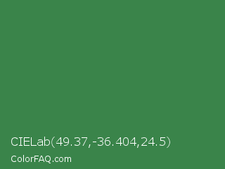 CIELab 49.37,-36.404,24.5 Color is a normal green color and the nearest color is Goblin #3d7d52. Hex code #3a844a and RGB value is rgb(58,132,74). In RGB color space, this color is composed of 23% red, 52% green, 29% blue, In CMYK color space, this color is composed of 56% cyan, 0% magenta, 44% yellow , 48% black , In HSL color space, this color has a hue angle of 133° , 39% saturation and 37% lightness.