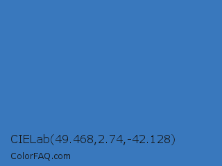 CIELab 49.468,2.74,-42.128 Color is a normal blue color and the nearest color is Cyan Blue Azure #4682bf. Hex code #3978bd and RGB value is rgb(57,120,189). In RGB color space, this color is composed of 22% red, 47% green, 74% blue, In CMYK color space, this color is composed of 70% cyan, 37% magenta, 0% yellow , 26% black , In HSL color space, this color has a hue angle of 211° , 54% saturation and 48% lightness.