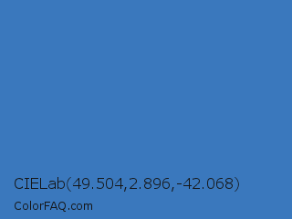 CIELab 49.504,2.896,-42.068 Color is a normal blue color and the nearest color is Cyan Blue Azure #4682bf. Hex code #3a78bd and RGB value is rgb(58,120,189). In RGB color space, this color is composed of 23% red, 47% green, 74% blue, In CMYK color space, this color is composed of 69% cyan, 37% magenta, 0% yellow , 26% black , In HSL color space, this color has a hue angle of 212° , 53% saturation and 48% lightness.