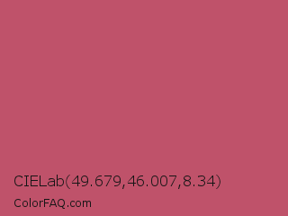 CIELab 49.679,46.007,8.34 Color is a normal red color and the nearest color is Popstar #be4f62. Hex code #bf526a and RGB value is rgb(191,82,106). In RGB color space, this color is composed of 75% red, 32% green, 42% blue, In CMYK color space, this color is composed of 0% cyan, 57% magenta, 45% yellow , 25% black , In HSL color space, this color has a hue angle of 347° , 46% saturation and 54% lightness.