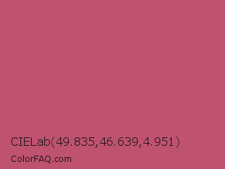 CIELab 49.835,46.639,4.951 Color is a normal rose color and the nearest color is Popstar #be4f62. Hex code #bf5270 and RGB value is rgb(191,82,112). In RGB color space, this color is composed of 75% red, 32% green, 44% blue, In CMYK color space, this color is composed of 0% cyan, 57% magenta, 41% yellow , 25% black , In HSL color space, this color has a hue angle of 343° , 46% saturation and 54% lightness.