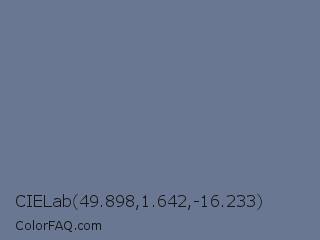CIELab 49.898,1.642,-16.233 Color is a normal blue color and the nearest color is Lynch #697e9a. Hex code #6a7792 and RGB value is rgb(106,119,146). In RGB color space, this color is composed of 42% red, 47% green, 57% blue, In CMYK color space, this color is composed of 27% cyan, 18% magenta, 0% yellow , 43% black , In HSL color space, this color has a hue angle of 221° , 16% saturation and 49% lightness.