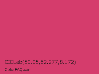 CIELab 50.05,62.277,8.172 Color is a normal rose color and the nearest color is Telemagenta #cf3476. Hex code #d53c6c and RGB value is rgb(213,60,108). In RGB color space, this color is composed of 84% red, 24% green, 42% blue, In CMYK color space, this color is composed of 0% cyan, 72% magenta, 49% yellow , 16% black , In HSL color space, this color has a hue angle of 341° , 65% saturation and 54% lightness.