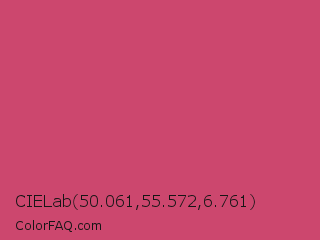 CIELab 50.061,55.572,6.761 Color is a normal rose color and the nearest color is Ruber #ce4676. Hex code #cc476e and RGB value is rgb(204,71,110). In RGB color space, this color is composed of 80% red, 28% green, 43% blue, In CMYK color space, this color is composed of 0% cyan, 65% magenta, 46% yellow , 20% black , In HSL color space, this color has a hue angle of 342° , 57% saturation and 54% lightness.