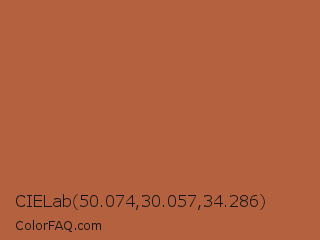 CIELab 50.074,30.057,34.286 Color is a normal orange color and the nearest color is Brown Rust #af593e. Hex code #b3613e and RGB value is rgb(179,97,62). In RGB color space, this color is composed of 70% red, 38% green, 24% blue, In CMYK color space, this color is composed of 0% cyan, 46% magenta, 65% yellow , 30% black , In HSL color space, this color has a hue angle of 18° , 49% saturation and 47% lightness.