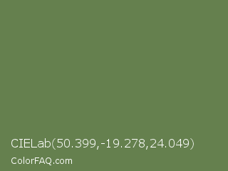 CIELab 50.399,-19.278,24.049 Color is a normal green color and the nearest color is Dingley #5d7747. Hex code #65804e and RGB value is rgb(101,128,78). In RGB color space, this color is composed of 40% red, 50% green, 31% blue, In CMYK color space, this color is composed of 21% cyan, 0% magenta, 39% yellow , 50% black , In HSL color space, this color has a hue angle of 92° , 24% saturation and 40% lightness.