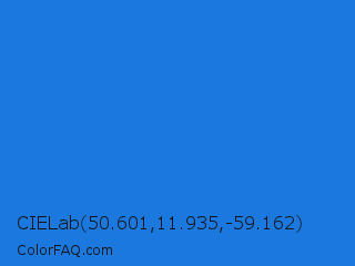 CIELab 50.601,11.935,-59.162 Color is a normal blue color and the nearest color is Bright Navy Blue #1974d2. Hex code #1a78de and RGB value is rgb(26,120,222). In RGB color space, this color is composed of 10% red, 47% green, 87% blue, In CMYK color space, this color is composed of 88% cyan, 46% magenta, 0% yellow , 13% black , In HSL color space, this color has a hue angle of 211° , 79% saturation and 49% lightness.