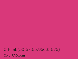 CIELab 50.67,65.966,0.676 Color is a normal rose color and the nearest color is Telemagenta #cf3476. Hex code #d9387a and RGB value is rgb(217,56,122). In RGB color space, this color is composed of 85% red, 22% green, 48% blue, In CMYK color space, this color is composed of 0% cyan, 74% magenta, 44% yellow , 15% black , In HSL color space, this color has a hue angle of 335° , 68% saturation and 54% lightness.