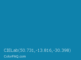 CIELab 50.731,-13.816,-30.398 Color is a normal blue color and the nearest color is Deep Cerulean #007ba7. Hex code #0e82ac and RGB value is rgb(14,130,172). In RGB color space, this color is composed of 5% red, 51% green, 67% blue, In CMYK color space, this color is composed of 92% cyan, 24% magenta, 0% yellow , 33% black , In HSL color space, this color has a hue angle of 196° , 85% saturation and 36% lightness.