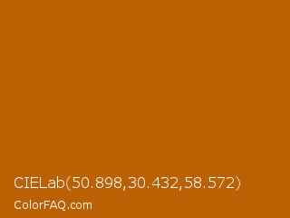CIELab 50.898,30.432,58.572 Color is a normal orange color and the nearest color is Ginger #b06500. Hex code #ba6203 and RGB value is rgb(186,98,3). In RGB color space, this color is composed of 73% red, 38% green, 1% blue, In CMYK color space, this color is composed of 0% cyan, 47% magenta, 98% yellow , 27% black , In HSL color space, this color has a hue angle of 31° , 97% saturation and 37% lightness.