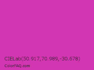 CIELab 50.917,70.989,-30.678 Color is a normal magenta color and the nearest color is Byzantine #bd33a4. Hex code #d135af and RGB value is rgb(209,53,175). In RGB color space, this color is composed of 82% red, 21% green, 69% blue, In CMYK color space, this color is composed of 0% cyan, 75% magenta, 16% yellow , 18% black , In HSL color space, this color has a hue angle of 313° , 63% saturation and 51% lightness.