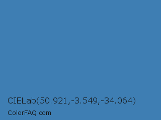 CIELab 50.921,-3.549,-34.064 Color is a normal blue color and the nearest color is Steel Blue #4682b4. Hex code #3e7eb3 and RGB value is rgb(62,126,179). In RGB color space, this color is composed of 24% red, 49% green, 70% blue, In CMYK color space, this color is composed of 65% cyan, 30% magenta, 0% yellow , 30% black , In HSL color space, this color has a hue angle of 207° , 49% saturation and 47% lightness.