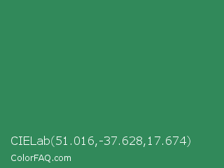 CIELab 51.016,-37.628,17.674 Color is a normal green color and the nearest color is Sea Green #2e8b57. Hex code #31895a and RGB value is rgb(49,137,90). In RGB color space, this color is composed of 19% red, 54% green, 35% blue, In CMYK color space, this color is composed of 64% cyan, 0% magenta, 34% yellow , 46% black , In HSL color space, this color has a hue angle of 148° , 47% saturation and 36% lightness.