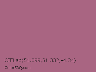 CIELab 51.099,31.332,-4.34 Color is a normal rose color and the nearest color is Tapestry #b05e81. Hex code #a96582 and RGB value is rgb(169,101,130). In RGB color space, this color is composed of 66% red, 40% green, 51% blue, In CMYK color space, this color is composed of 0% cyan, 40% magenta, 23% yellow , 34% black , In HSL color space, this color has a hue angle of 334° , 28% saturation and 53% lightness.