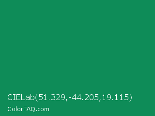 CIELab 51.329,-44.205,19.115 Color is a dark green color and the nearest color is Spanish Green #009150. Hex code #0e8c58 and RGB value is rgb(14,140,88). In RGB color space, this color is composed of 5% red, 55% green, 35% blue, In CMYK color space, this color is composed of 90% cyan, 0% magenta, 37% yellow , 45% black , In HSL color space, this color has a hue angle of 155° , 82% saturation and 30% lightness.