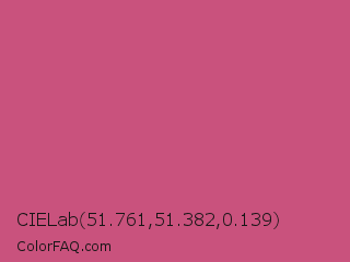 CIELab 51.761,51.382,0.139 Color is a normal rose color and the nearest color is Mystic #d65282. Hex code #c9527d and RGB value is rgb(201,82,125). In RGB color space, this color is composed of 79% red, 32% green, 49% blue, In CMYK color space, this color is composed of 0% cyan, 59% magenta, 38% yellow , 21% black , In HSL color space, this color has a hue angle of 338° , 52% saturation and 55% lightness.