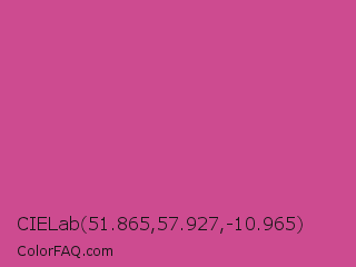 CIELab 51.865,57.927,-10.965 Color is a normal rose color and the nearest color is Mulberry #c54b8c. Hex code #cd4b90 and RGB value is rgb(205,75,144). In RGB color space, this color is composed of 80% red, 29% green, 56% blue, In CMYK color space, this color is composed of 0% cyan, 63% magenta, 30% yellow , 20% black , In HSL color space, this color has a hue angle of 328° , 57% saturation and 55% lightness.