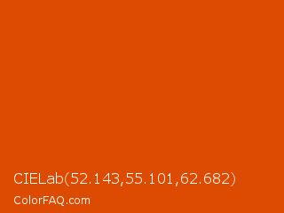 CIELab 52.143,55.101,62.682 Color is a normal orange color and the nearest color is Grenadier #d54600. Hex code #dd4a01 and RGB value is rgb(221,74,1). In RGB color space, this color is composed of 87% red, 29% green, 0% blue, In CMYK color space, this color is composed of 0% cyan, 67% magenta, 100% yellow , 13% black , In HSL color space, this color has a hue angle of 20° , 99% saturation and 44% lightness.