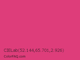 CIELab 52.144,65.701,2.926 Color is a normal rose color and the nearest color is Magenta Pantone #d0417e. Hex code #de3d7a and RGB value is rgb(222,61,122). In RGB color space, this color is composed of 87% red, 24% green, 48% blue, In CMYK color space, this color is composed of 0% cyan, 73% magenta, 45% yellow , 13% black , In HSL color space, this color has a hue angle of 337° , 71% saturation and 55% lightness.
