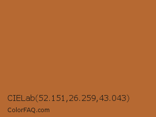 CIELab 52.151,26.259,43.043 Color is a normal orange color and the nearest color is Liver Dogs #b86d29. Hex code #b66932 and RGB value is rgb(182,105,50). In RGB color space, this color is composed of 71% red, 41% green, 20% blue, In CMYK color space, this color is composed of 0% cyan, 42% magenta, 73% yellow , 29% black , In HSL color space, this color has a hue angle of 25° , 57% saturation and 45% lightness.