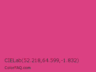 CIELab 52.218,64.599,-1.832 Color is a normal rose color and the nearest color is Magenta Pantone #d0417e. Hex code #db4082 and RGB value is rgb(219,64,130). In RGB color space, this color is composed of 86% red, 25% green, 51% blue, In CMYK color space, this color is composed of 0% cyan, 71% magenta, 41% yellow , 14% black , In HSL color space, this color has a hue angle of 334° , 68% saturation and 55% lightness.