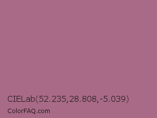 CIELab 52.235,28.808,-5.039 Color is a normal rose color and the nearest color is Tapestry #b05e81. Hex code #a86a86 and RGB value is rgb(168,106,134). In RGB color space, this color is composed of 66% red, 42% green, 53% blue, In CMYK color space, this color is composed of 0% cyan, 37% magenta, 20% yellow , 34% black , In HSL color space, this color has a hue angle of 333° , 26% saturation and 54% lightness.