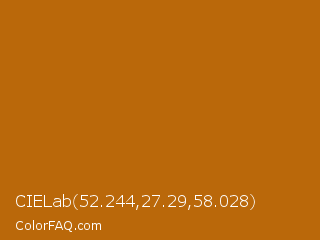 CIELab 52.244,27.29,58.028 Color is a normal orange color and the nearest color is Mai Tai #b06608. Hex code #ba680a and RGB value is rgb(186,104,10). In RGB color space, this color is composed of 73% red, 41% green, 4% blue, In CMYK color space, this color is composed of 0% cyan, 44% magenta, 95% yellow , 27% black , In HSL color space, this color has a hue angle of 32° , 90% saturation and 38% lightness.