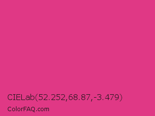 CIELab 52.252,68.87,-3.479 Color is a normal rose color and the nearest color is Cerise #da3287. Hex code #e03885 and RGB value is rgb(224,56,133). In RGB color space, this color is composed of 88% red, 22% green, 52% blue, In CMYK color space, this color is composed of 0% cyan, 75% magenta, 41% yellow , 12% black , In HSL color space, this color has a hue angle of 333° , 73% saturation and 55% lightness.