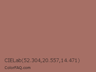 CIELab 52.304,20.557,14.471 Color is a normal red color and the nearest color is Blast Off Bronze #a57164. Hex code #a66f65 and RGB value is rgb(166,111,101). In RGB color space, this color is composed of 65% red, 44% green, 40% blue, In CMYK color space, this color is composed of 0% cyan, 33% magenta, 39% yellow , 35% black , In HSL color space, this color has a hue angle of 9° , 27% saturation and 52% lightness.