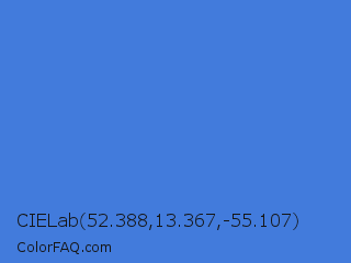 CIELab 52.388,13.367,-55.107 Color is a normal blue color and the nearest color is Royal Blue #4169e1. Hex code #427bdc and RGB value is rgb(66,123,220). In RGB color space, this color is composed of 26% red, 48% green, 86% blue, In CMYK color space, this color is composed of 70% cyan, 44% magenta, 0% yellow , 14% black , In HSL color space, this color has a hue angle of 218° , 69% saturation and 56% lightness.