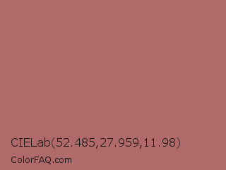 CIELab 52.485,27.959,11.98 Color is a normal red color and the nearest color is Copper Penny #ad6f69. Hex code #b06a6a and RGB value is rgb(176,106,106). In RGB color space, this color is composed of 69% red, 42% green, 42% blue, In CMYK color space, this color is composed of 0% cyan, 40% magenta, 40% yellow , 31% black , In HSL color space, this color has a hue angle of 0° , 31% saturation and 55% lightness.