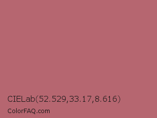 CIELab 52.529,33.17,8.616 Color is a normal red color and the nearest color is Rose Gold #b76e79. Hex code #b66670 and RGB value is rgb(182,102,112). In RGB color space, this color is composed of 71% red, 40% green, 44% blue, In CMYK color space, this color is composed of 0% cyan, 44% magenta, 38% yellow , 29% black , In HSL color space, this color has a hue angle of 353° , 35% saturation and 56% lightness.