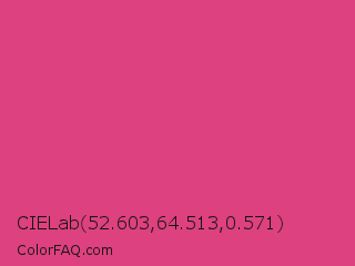 CIELab 52.603,64.513,0.571 Color is a normal rose color and the nearest color is Magenta Pantone #d0417e. Hex code #dd417f and RGB value is rgb(221,65,127). In RGB color space, this color is composed of 87% red, 25% green, 50% blue, In CMYK color space, this color is composed of 0% cyan, 71% magenta, 43% yellow , 13% black , In HSL color space, this color has a hue angle of 336° , 70% saturation and 56% lightness.