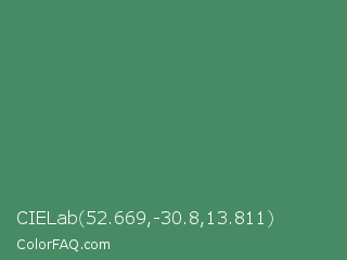 CIELab 52.669,-30.8,13.811 Color is a normal green color and the nearest color is Viridian #40826d. Hex code #478b65 and RGB value is rgb(71,139,101). In RGB color space, this color is composed of 28% red, 55% green, 40% blue, In CMYK color space, this color is composed of 49% cyan, 0% magenta, 27% yellow , 45% black , In HSL color space, this color has a hue angle of 146° , 32% saturation and 41% lightness.