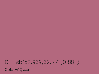 CIELab 52.939,32.771,0.881 Color is a normal rose color and the nearest color is Rose Gold #b76e79. Hex code #b3687e and RGB value is rgb(179,104,126). In RGB color space, this color is composed of 70% red, 41% green, 49% blue, In CMYK color space, this color is composed of 0% cyan, 42% magenta, 30% yellow , 30% black , In HSL color space, this color has a hue angle of 342° , 33% saturation and 55% lightness.