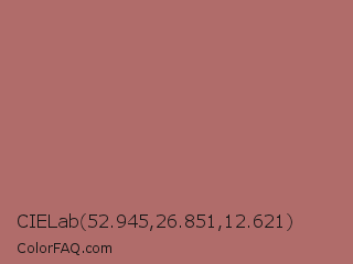 CIELab 52.945,26.851,12.621 Color is a normal red color and the nearest color is Copper Penny #ad6f69. Hex code #b06c6a and RGB value is rgb(176,108,106). In RGB color space, this color is composed of 69% red, 42% green, 42% blue, In CMYK color space, this color is composed of 0% cyan, 39% magenta, 40% yellow , 31% black , In HSL color space, this color has a hue angle of 2° , 31% saturation and 55% lightness.