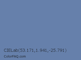 CIELab 53.171,1.941,-25.791 Color is a normal blue color and the nearest color is Glaucous #6082b6. Hex code #6680ab and RGB value is rgb(102,128,171). In RGB color space, this color is composed of 40% red, 50% green, 67% blue, In CMYK color space, this color is composed of 40% cyan, 25% magenta, 0% yellow , 33% black , In HSL color space, this color has a hue angle of 217° , 29% saturation and 54% lightness.
