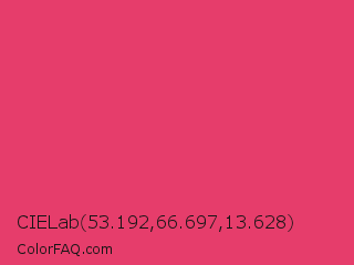 CIELab 53.192,66.697,13.628 Color is a normal rose color and the nearest color is Paradise Pink #e63e62. Hex code #e63d6b and RGB value is rgb(230,61,107). In RGB color space, this color is composed of 90% red, 24% green, 42% blue, In CMYK color space, this color is composed of 0% cyan, 73% magenta, 53% yellow , 10% black , In HSL color space, this color has a hue angle of 344° , 77% saturation and 57% lightness.