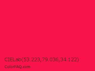 CIELab 53.223,79.036,34.122 Color is a normal red color and the nearest color is Awesome #ff2052. Hex code #fa124a and RGB value is rgb(250,18,74). In RGB color space, this color is composed of 98% red, 7% green, 29% blue, In CMYK color space, this color is composed of 0% cyan, 93% magenta, 70% yellow , 2% black , In HSL color space, this color has a hue angle of 346° , 96% saturation and 53% lightness.