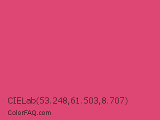 CIELab 53.248,61.503,8.707 Color is a normal rose color and the nearest color is Cabaret #d94972. Hex code #de4773 and RGB value is rgb(222,71,115). In RGB color space, this color is composed of 87% red, 28% green, 45% blue, In CMYK color space, this color is composed of 0% cyan, 68% magenta, 48% yellow , 13% black , In HSL color space, this color has a hue angle of 343° , 70% saturation and 57% lightness.