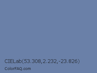 CIELab 53.308,2.232,-23.826 Color is a normal blue color and the nearest color is Hoki #65869f. Hex code #6a80a8 and RGB value is rgb(106,128,168). In RGB color space, this color is composed of 42% red, 50% green, 66% blue, In CMYK color space, this color is composed of 37% cyan, 24% magenta, 0% yellow , 34% black , In HSL color space, this color has a hue angle of 219° , 26% saturation and 54% lightness.