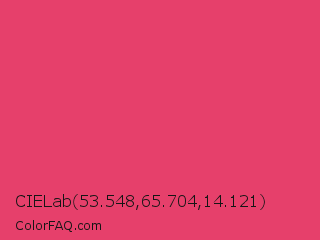 CIELab 53.548,65.704,14.121 Color is a normal rose color and the nearest color is Paradise Pink #e63e62. Hex code #e6406b and RGB value is rgb(230,64,107). In RGB color space, this color is composed of 90% red, 25% green, 42% blue, In CMYK color space, this color is composed of 0% cyan, 72% magenta, 53% yellow , 10% black , In HSL color space, this color has a hue angle of 344° , 77% saturation and 58% lightness.