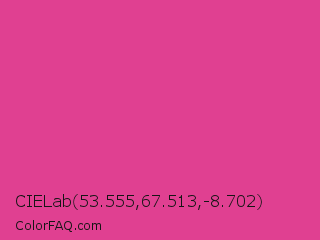 CIELab 53.555,67.513,-8.702 Color is a normal rose color and the nearest color is Pink Pantone #d74894. Hex code #e04091 and RGB value is rgb(224,64,145). In RGB color space, this color is composed of 88% red, 25% green, 57% blue, In CMYK color space, this color is composed of 0% cyan, 71% magenta, 35% yellow , 12% black , In HSL color space, this color has a hue angle of 330° , 72% saturation and 56% lightness.