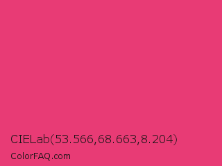 CIELab 53.566,68.663,8.204 Color is a normal rose color and the nearest color is Cerise Pink #ec3b83. Hex code #e83b75 and RGB value is rgb(232,59,117). In RGB color space, this color is composed of 91% red, 23% green, 46% blue, In CMYK color space, this color is composed of 0% cyan, 75% magenta, 50% yellow , 9% black , In HSL color space, this color has a hue angle of 340° , 79% saturation and 57% lightness.
