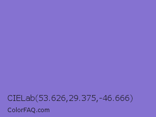 CIELab 53.626,29.375,-46.666 Color is a light indigo color and the nearest color is True V #8a73d6. Hex code #8572d1 and RGB value is rgb(133,114,209). In RGB color space, this color is composed of 52% red, 45% green, 82% blue, In CMYK color space, this color is composed of 36% cyan, 45% magenta, 0% yellow , 18% black , In HSL color space, this color has a hue angle of 252° , 51% saturation and 63% lightness.