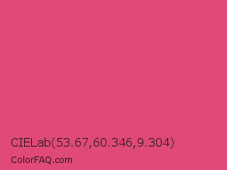 CIELab 53.67,60.346,9.304 Color is a normal rose color and the nearest color is Cabaret #d94972. Hex code #de4a73 and RGB value is rgb(222,74,115). In RGB color space, this color is composed of 87% red, 29% green, 45% blue, In CMYK color space, this color is composed of 0% cyan, 67% magenta, 48% yellow , 13% black , In HSL color space, this color has a hue angle of 343° , 69% saturation and 58% lightness.