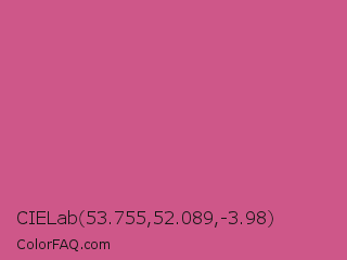 CIELab 53.755,52.089,-3.98 Color is a normal rose color and the nearest color is Mystic #d65282. Hex code #ce5789 and RGB value is rgb(206,87,137). In RGB color space, this color is composed of 81% red, 34% green, 54% blue, In CMYK color space, this color is composed of 0% cyan, 58% magenta, 33% yellow , 19% black , In HSL color space, this color has a hue angle of 335° , 55% saturation and 57% lightness.