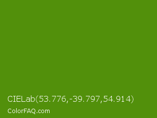 CIELab 53.776,-39.797,54.914 Color is a dark green color and the nearest color is Vida Loca #549019. Hex code #52900b and RGB value is rgb(82,144,11). In RGB color space, this color is composed of 32% red, 56% green, 4% blue, In CMYK color space, this color is composed of 43% cyan, 0% magenta, 92% yellow , 44% black , In HSL color space, this color has a hue angle of 88° , 86% saturation and 30% lightness.